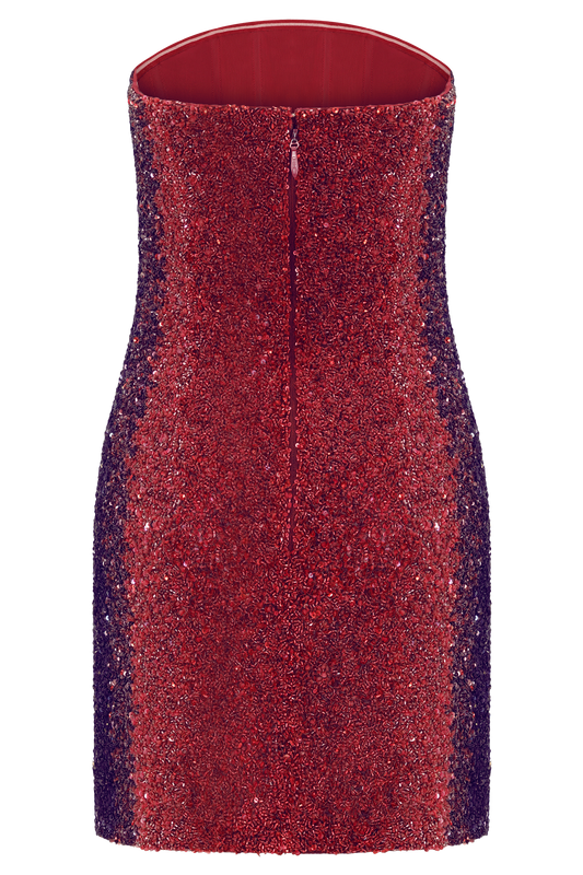 Hand Beaded Strapless Mini Dress - Red Ombre