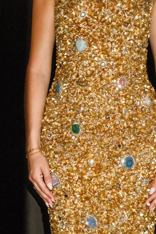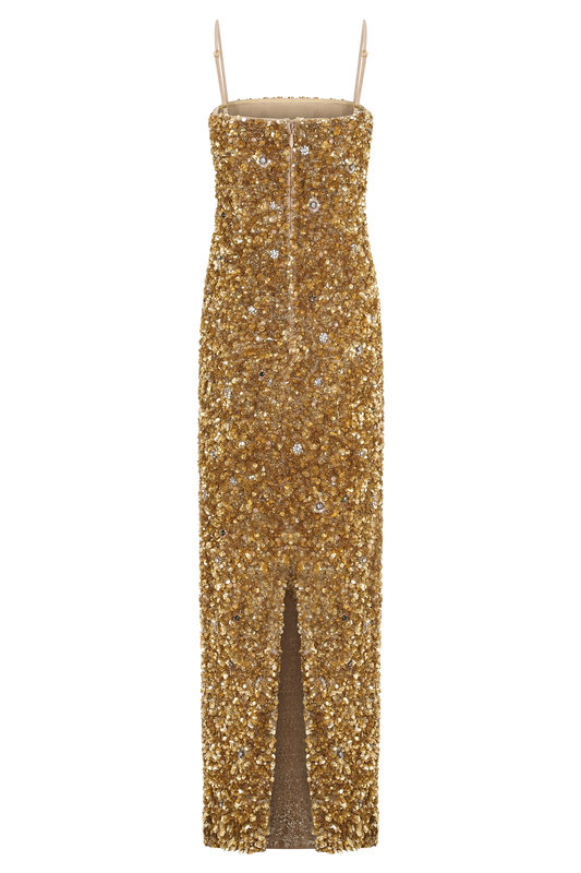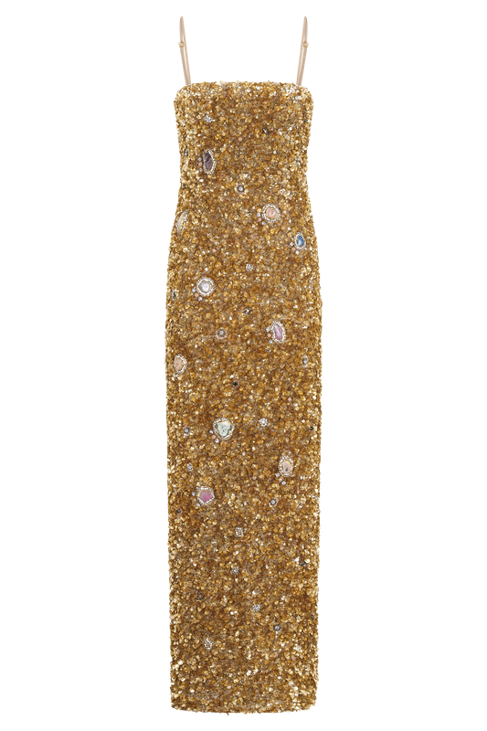 Regular price $1,789Unit price / perMESHKI AtelierPorter Hand Beaded Midi Dress - Gold