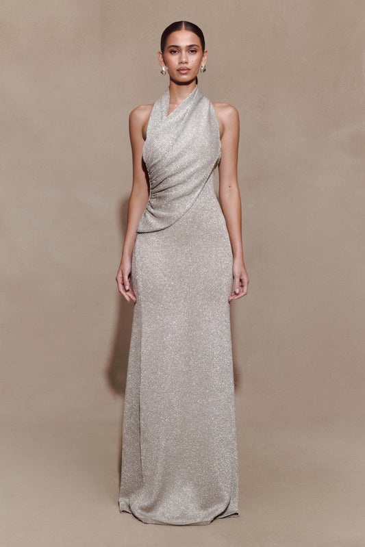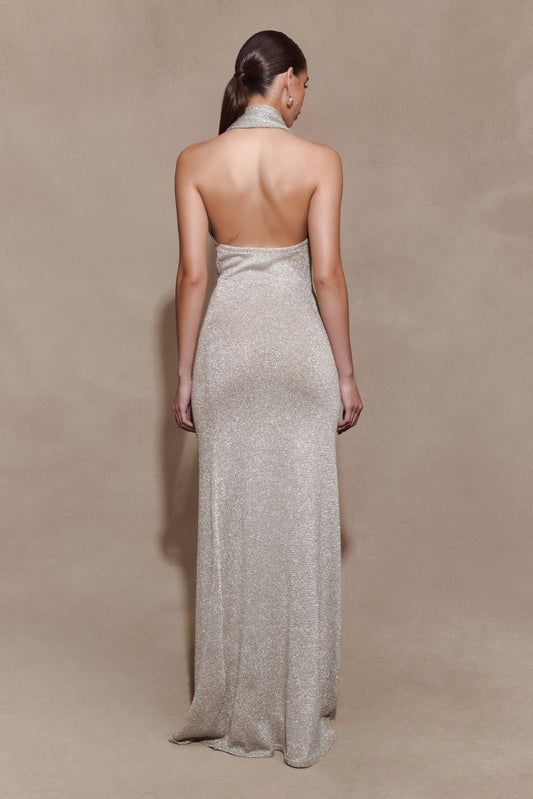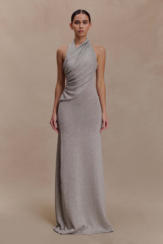 Elma Lurex Knit Halter Maxi Dress - Silver