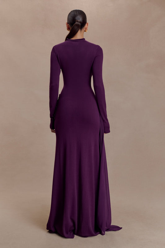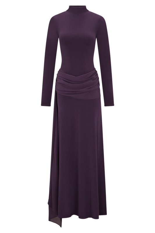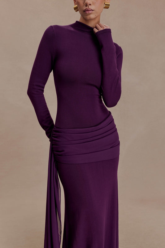 Grayson Knit Chiffon Maxi Dress - Plum