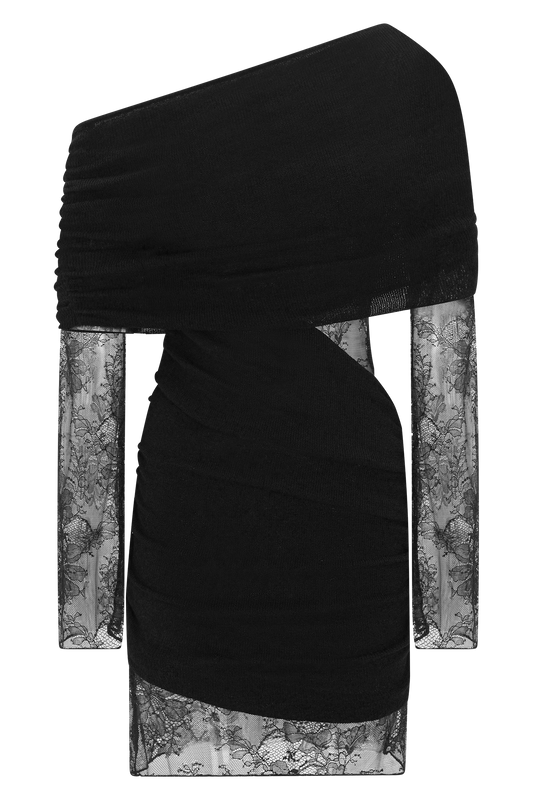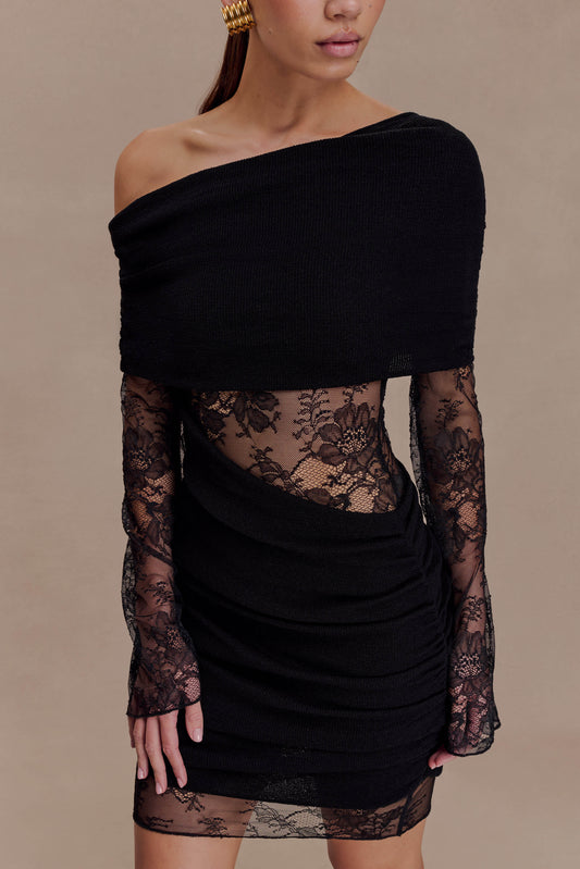 Luxie Lace Knit Mini Dress - Black