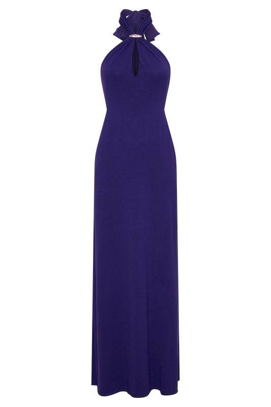 Ozias Halter Semi Sheer Knit Maxi Dress - Deep Purple