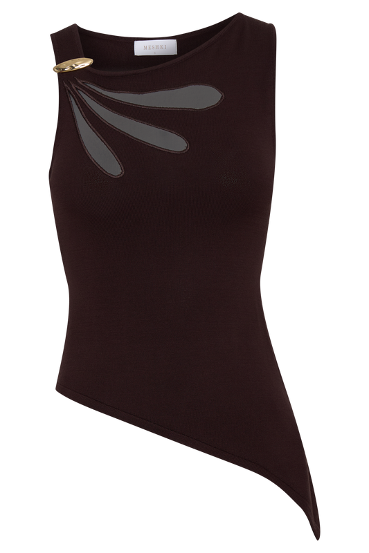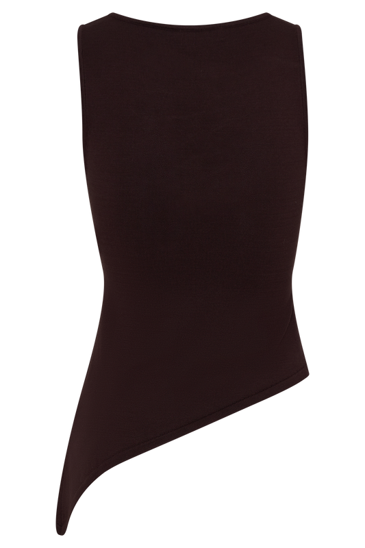Brock Asymmetrical Neckline Knit Top - Dark Chocolate