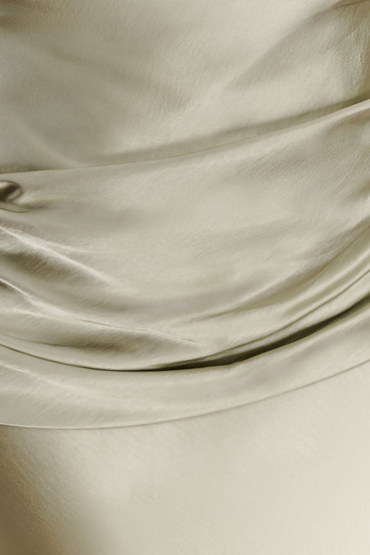 Myla Draped Shoulders Satin Maxi Dress - Khaki