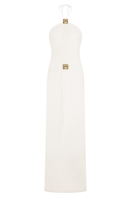 Arra Chiffon And Lace Halter Maxi Dress - Cacao Brown