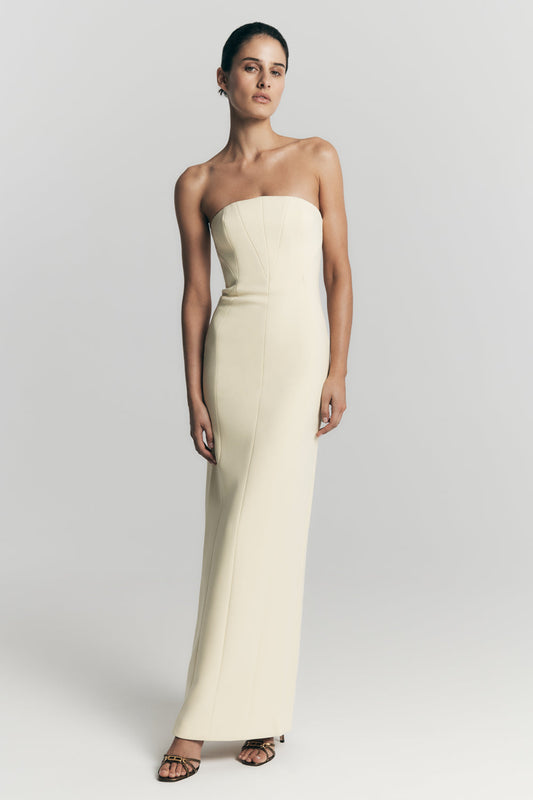 Kalila Strapless Crepe Maxi Dress - Lemon