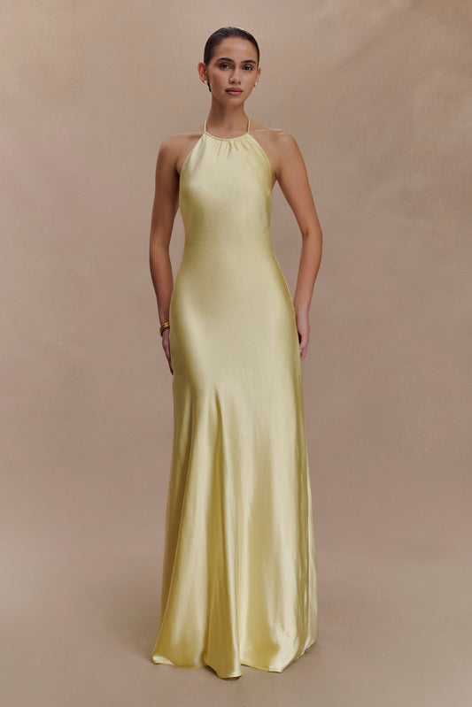 Bella Satin Halter Maxi Dress - Lemon