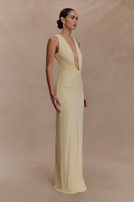 Stella Draped Slinky Maxi Dress - Pale Lemon