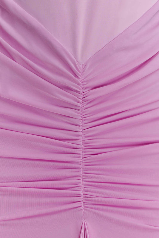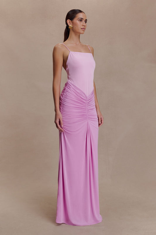 Amandine Ruched Slinky Maxi Dress - Pale Pink