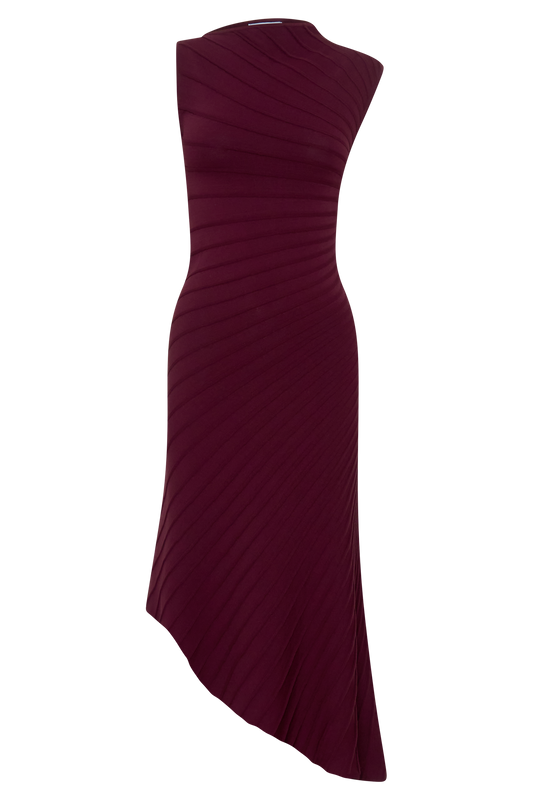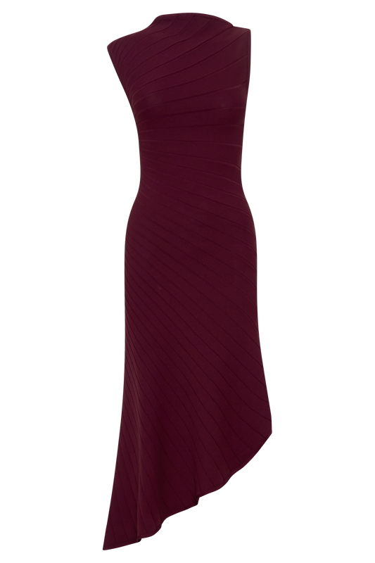 Nola Shirred Asymmetric Midi Dress - Mocha