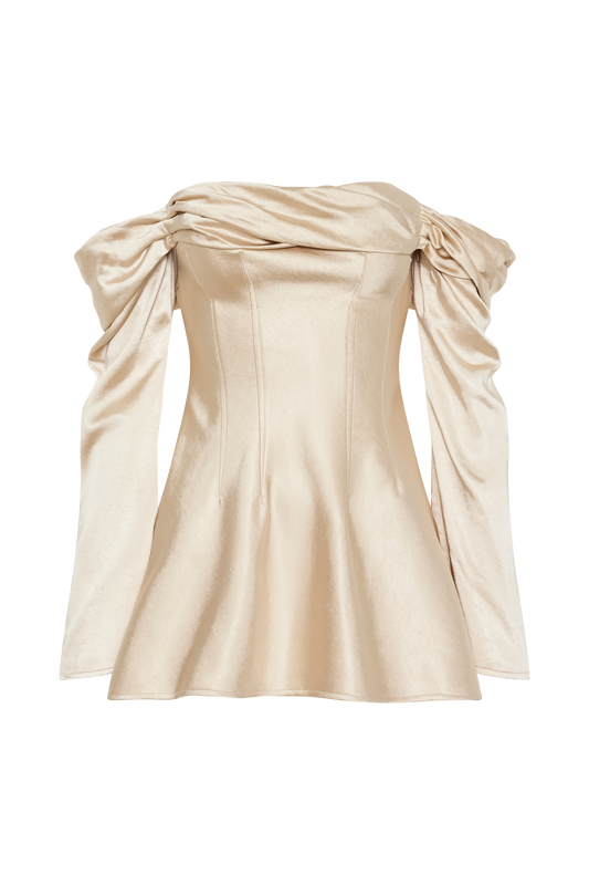 Off Shoulder Knit Mini Dress - Gold