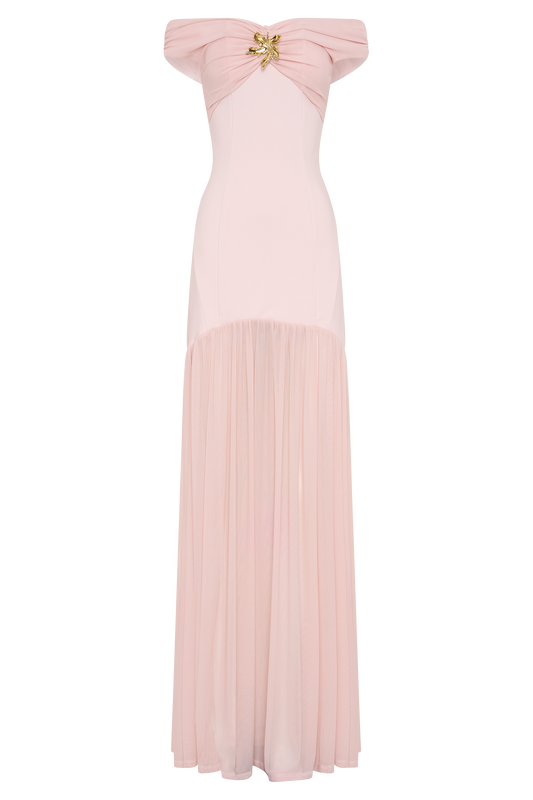 Kellie Off Shoulder Crepe Maxi Dress - Blush Pink