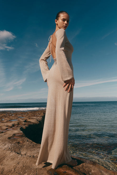 $145-40% Off Sale price $87Unit price / per30% OFF AT CARTIngrid Metallic Knit Maxi Dress - Bronze