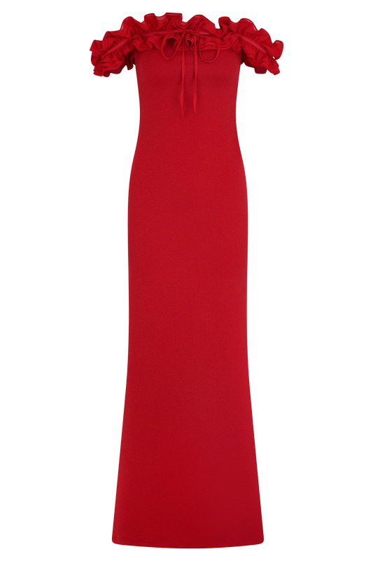 Nova Ruffle Off Shoulder Maxi Dress - Ruby