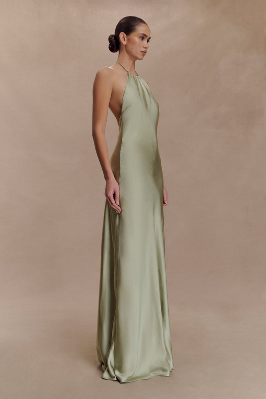Regular price $159Unit price / per20% OFF AT CARTBella Satin Halter Maxi Dress - Sage