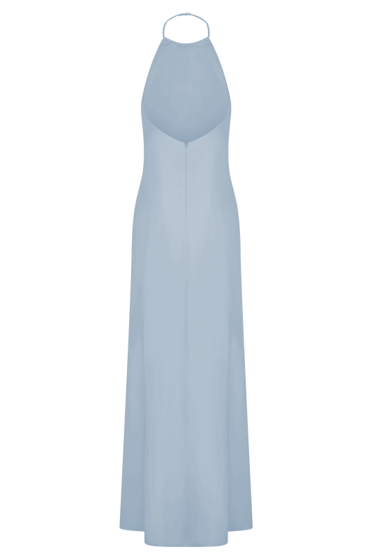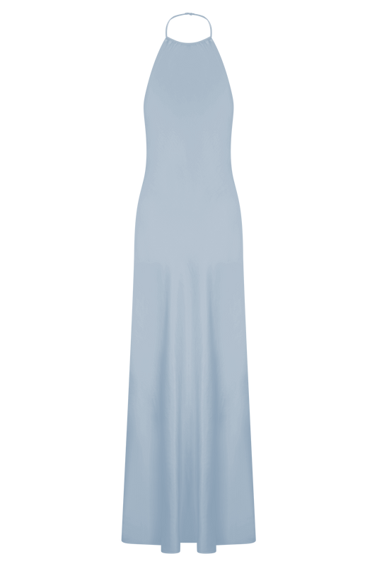 Bella Satin Halter Maxi Dress - Frosted Blue