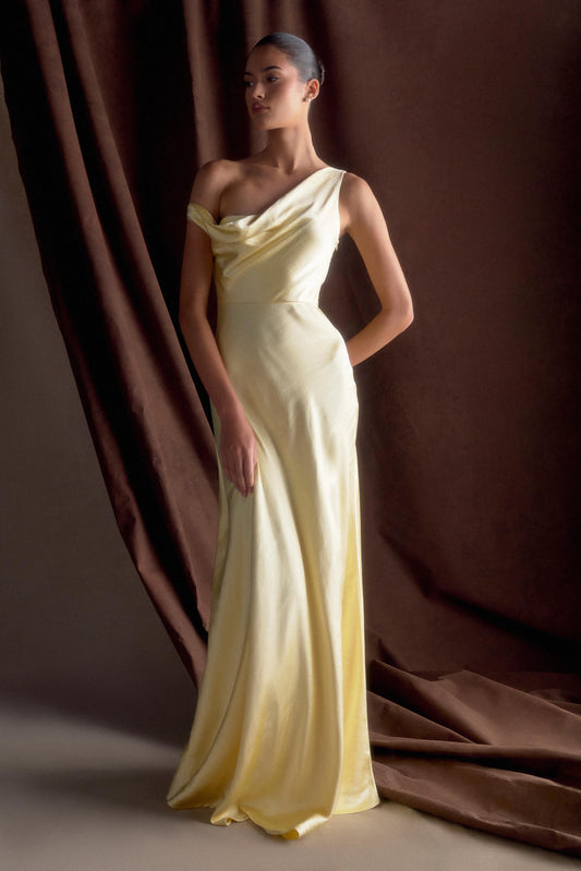 Jacinta One Shoulder Maxi Dress - Pastel Lemon