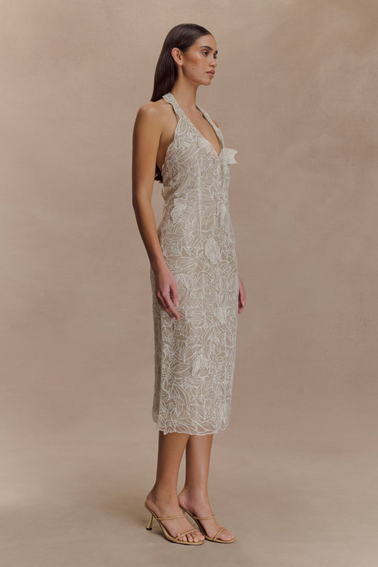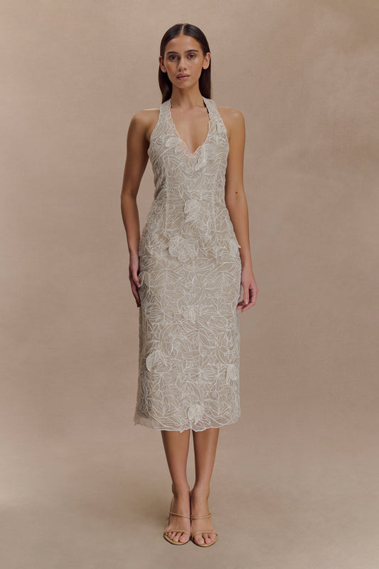 Lenore Silk Lace Halter Midi Dress - Ivory