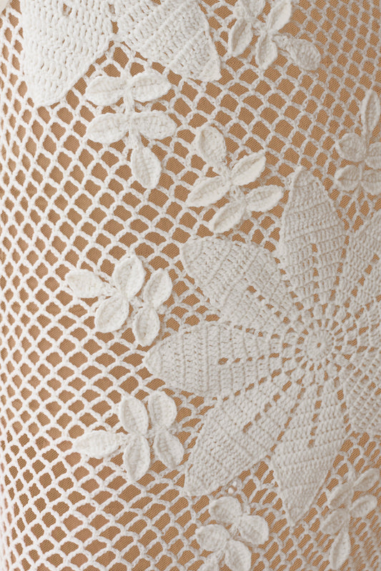 Samantha Crochet Midi Dress With Flowers - Ivory