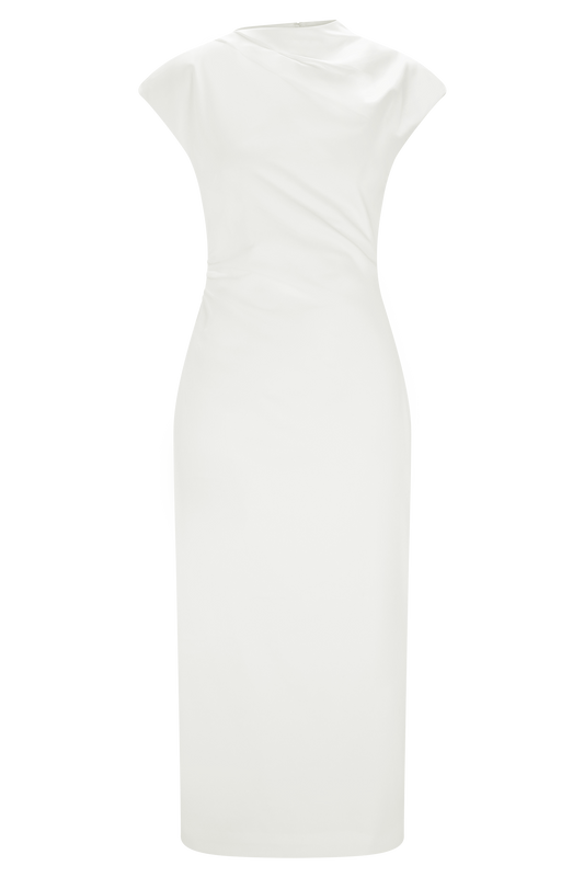Kendra Scuba Jersey Midi Dress With Hardware - Ivory