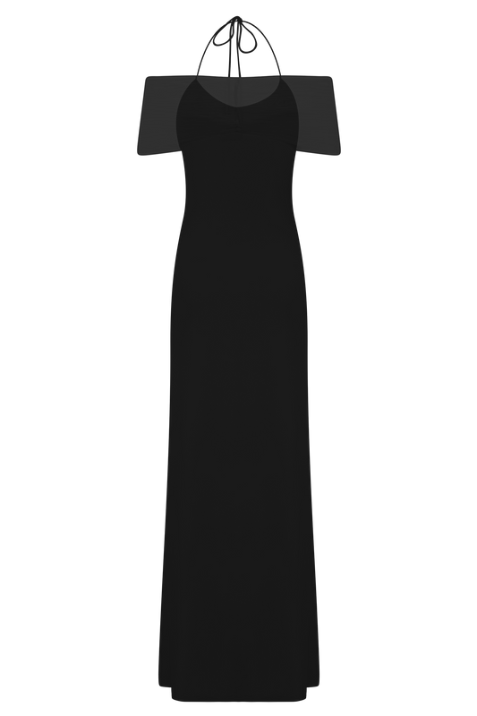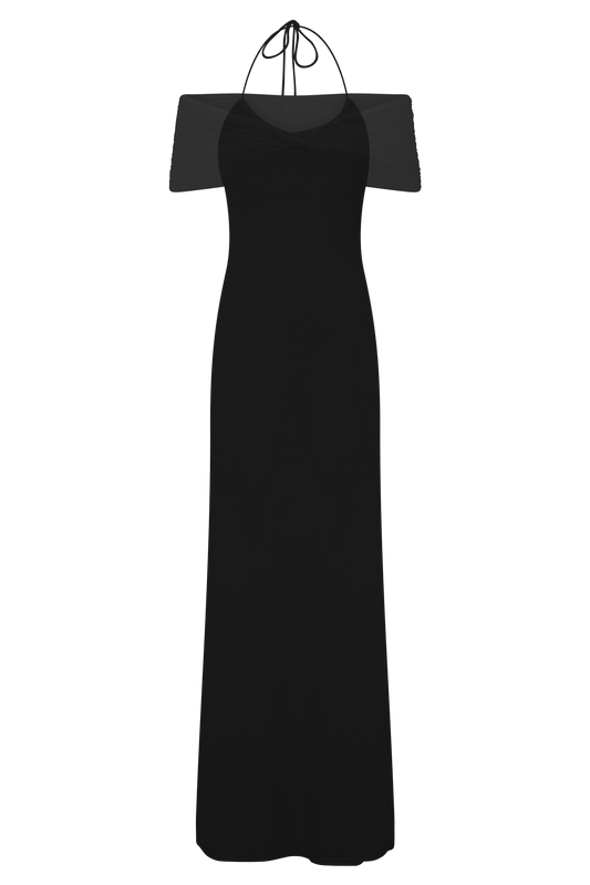 Bernadina Mesh And Slinky Halter Maxi Dress - Black