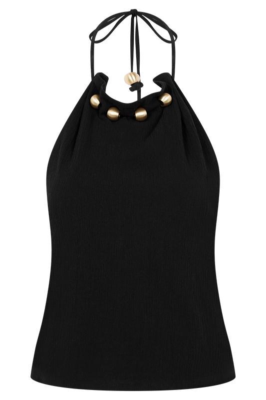 Abeda Cotton Top With Hardware - Black
