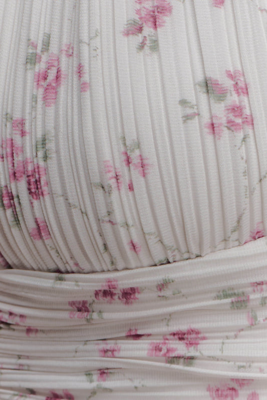 Amaris Sleeveless Plisse Halter Top - Floral Ditsy Print