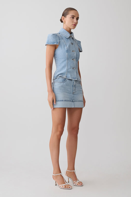 Bently Short Sleeve Denim Top - Washed Light Blue