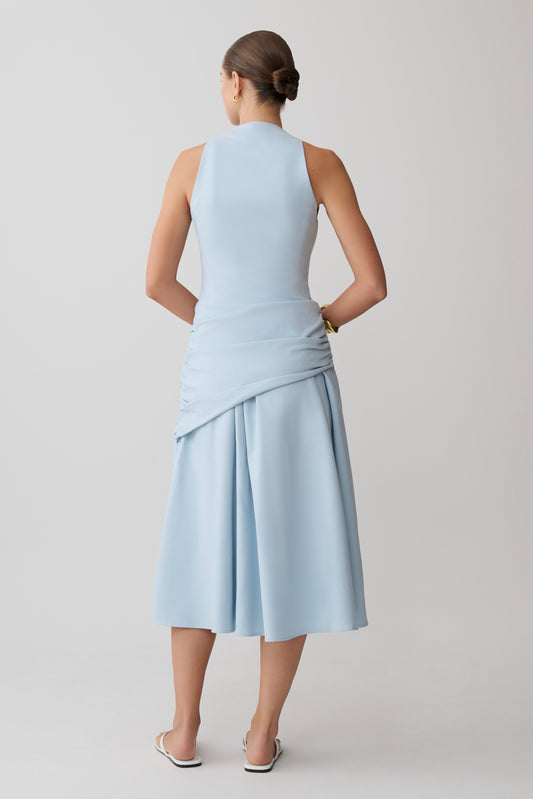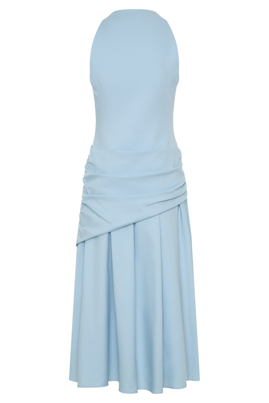 Emily Wrapped Waist Midi Dress - Sky Blue