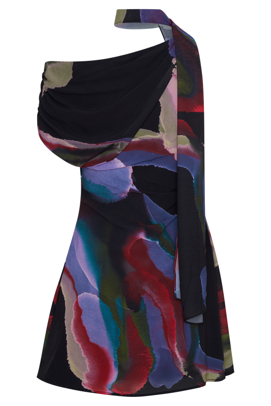 Chiffon Mini Dress - Multi Fluid Reverie Print