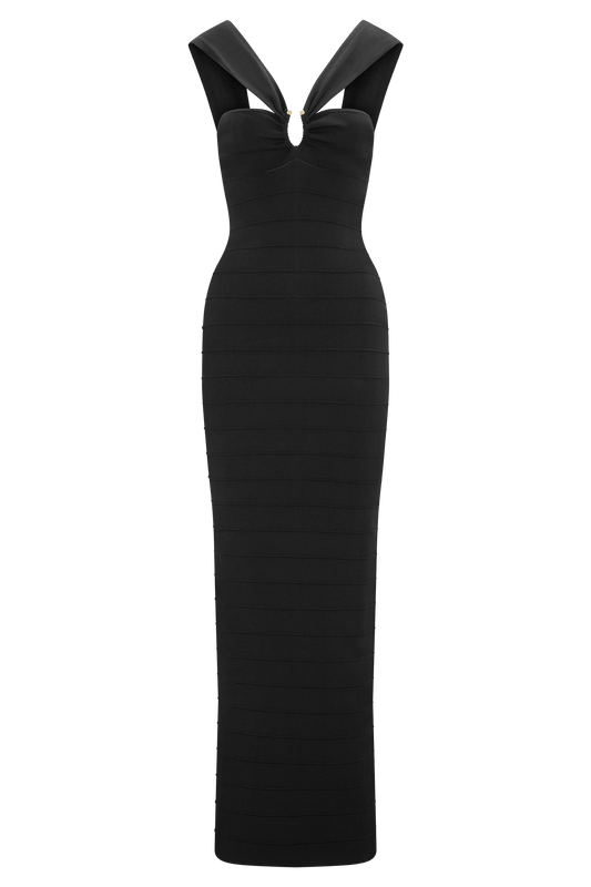 Asha Floral Mesh And Satin Maxi Dress - Black