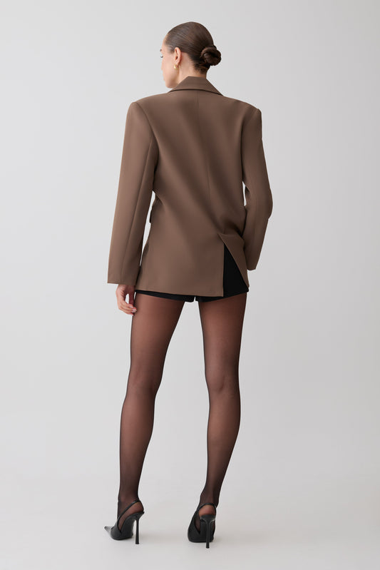 Simone Cropped Suiting Blazer - Dark Chocolate