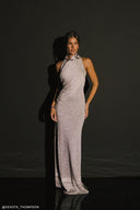 Halter Maxi Dress With Hardware - Blush Ivory