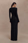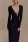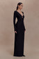 The ACADIA Diamante Long Sleeve Maxi Dress is designed to shine with understated sophistication. Featuring a plunging V neckline and an adjustable front tie, it allows for a customisable fit while enhancing the décolletage. The fitted bodice contours the silhouette, complemented by long sleeves and a closed back for a balanced, polished finish. Fully lined for comfort and coverage, this maxi-length design is finished with diamante embellishment that catches the light effortlessly — delivering elevated glamour with modern restraint