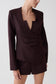The AGATHA Square Neck Blazer reimagines classic tailoring with a sculpted, modern silhouette. Designed with a structured fit and a sharp V neckline, it creates a refined frame through the bodice. A cross-front pleated panel adds dimension and shape, enhancing the fitted wrap design, while a discreet hook-and-eye closure maintains a clean, polished finish. Completed with a back vent for ease of movement, this blazer delivers precise tailoring with a contemporary edge.