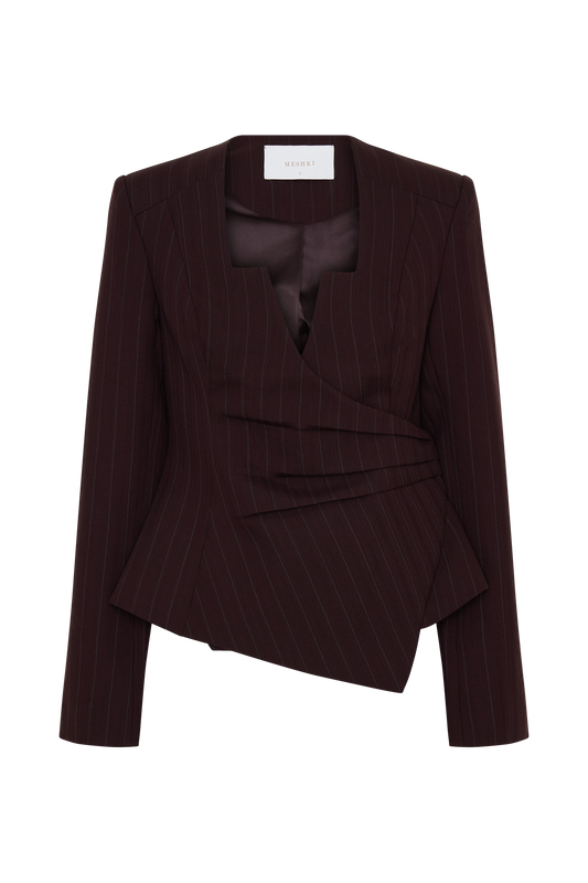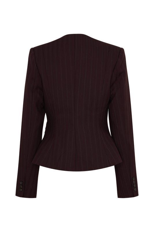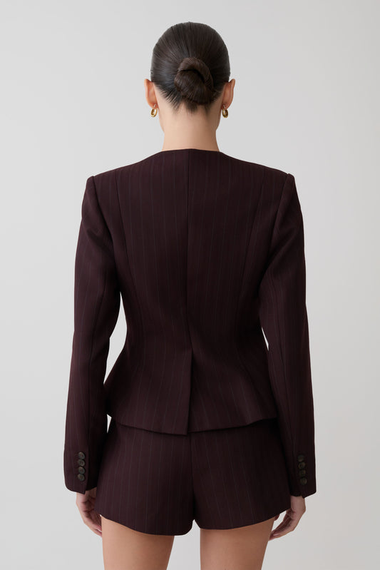 Straight Leg Suiting Pants - Plum Pinstripe