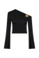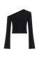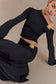 Asymmetrical Long Sleeve Top With Floral Hardware - Black