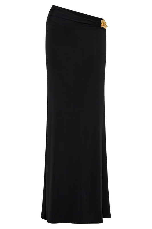Step into sophistication with the AINSLEY Asymmetrical Long Sleeve Top, where modern design meets refined detail. This stunning piece features a chic asymmetrical neckline that beautifully frames the face, complemented by long sleeves that offer both coverage and style. The lined bodice ensures a smooth, flattering fit, while the open shoulder design adds a touch of daring allure. Accentuated with exquisite floral hardware, this top transforms a classic silhouette into a statement piece. Perfect for pairing with the Ainsley Asymmetrical Maxi Skirt with Floral Hardware, for an effortlessly elevated ensemble.