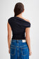 ALAYNA is an asymmetrical top with a straight-cut neckline and strategic ruching. Sewn from a custom blend of elastane and recycled nylon, its stretchy fabrication offers a fairly bodycon fit that highlights your curves. The ruching around the waist and arms further shapes and elongates the body, creating a universally flattering silhouette. Fresh and unique, this seasonal must-have can be worn as a solo feature or layered with a textured blazer.