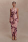 Slinky Ruffle Maxi Dress - Pink Blurred Floral Print