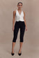 The ALESSANDRA Slinky Ruffle Top blends soft romance with modern allure. Designed with a plunging V neckline and racer-back silhouette, it frames the body with confident elegance. A gathered bodice enhances the fitted bodycon shape, while ruffle detailing through the front adds movement and feminine texture. Fully lined for a smooth, supportive finish, this top delivers elevated impact — perfect for pairing with tailored separates or statement skirts for after-dark styling.