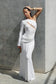 The ALEXIUS One Shoulder Knit Maxi Dress is a striking blend of modern design and comfortable knitwear. Featuring an asymmetrical neckline with a single long sleeve and front bust cutout, this fitted silhouette makes a confident statement. A gathered overlay panel drapes across the hip for added texture and movement, while the unlined knit keeps it lightweight and body-hugging. Finished in a maxi length, this dress is the perfect piece for elevated evenings, standout events, or any moment that calls for soft structure and strong style.