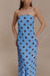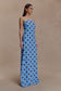 Strapless Chiffon Maxi Dress - Blue Polka Dot