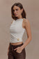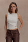 The AMIA Slinky Sleeveless Top With Hardware pairs sleek minimalism with statement detail. Designed with a clean crew neckline, this top features polished hardware that anchors the gathered detailing through the bodice, creating a flattering, sculpted effect. The asymmetric hemline adds a contemporary twist, while the fully lined, bodycon fit ensures a smooth, supportive finish. Sleeveless and crafted in slinky fabrication, this top delivers modern sophistication with elevated ease.