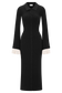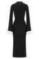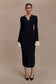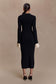 The AMIROSE Ruffle Knit Midi Dress is a modern reinterpretation of feminine tailoring. Crafted from a soft ribbed knit, it features a collared neckline and a semi-functional button-front closure for a touch of classic refinement. The long sleeves are finished with contrast ruffle frills that add movement and texture, balancing structure with softness. Cut to a fitted silhouette that flatters the form, this midi-length dress is unlined for a sleek, second-skin feel — effortlessly blending comfort with elevated charm.