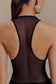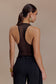 The ASPYN Slinky And Mesh Top blends fluid design with modern edge. Featuring a V-plunge neckline and racerback silhouette, it’s elevated by a sheer mesh back that reveals just the right amount of skin. The low underarm cut and binding detail create definition through the bodice, while the fitted silhouette flatters the form with ease. Crafted from slinky stretch fabric for a smooth, sculpted finish, this top delivers effortless sophistication with a daring twist.