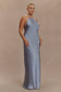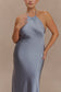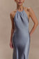 Satin Halter Maxi Dress - Frosted Blue
