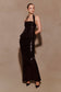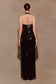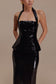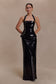The BERTIE Sequin Peplum Halter Maxi Dress brings modern allure to timeless elegance. Designed with a halter neckline and structured peplum waist, it accentuates the figure while shimmering under the light with every movement. The fitted bodice and straight skirt create a sleek, elongating silhouette, while princess seams enhance shape and definition. Fully lined for comfort and finished with a centre back zipper, back neck button closure, and back leg opening for ease of movement, this dress was made to turn heads with polished sophistication.