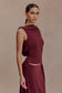 The BRIDGET Slinky Cowl Back Top is all about contrasts—sleek minimalism meets fluid draping. Featuring a high neckline and a fitted bodice, it frames the silhouette with understated polish, while the sleeveless cut adds a modern edge. Turn to reveal the statement: a soft draped cowl back with an open-back detail that balances allure with elegance. Fully lined for a smooth fit, this top transitions seamlessly from day to night with elevated ease.