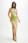 The BRONWYN Slinky Ruched Maxi Skirt With Split is a sophisticated and stylish piece designed to make a statement. Featuring a mid-rise fit and a flattering V front, this skirt enhances your natural curves. The centre front split adds a touch of allure, while the ruching at the side seams provides a chic, textured look. Made with stretch fabrication, it ensures comfort and ease of movement. For a complete and stunning outfit, pair this skirt with the Bronwyn Slinky Halter Crop Top, creating a seamless and elegant ensemble perfect for any special occasion or night out.